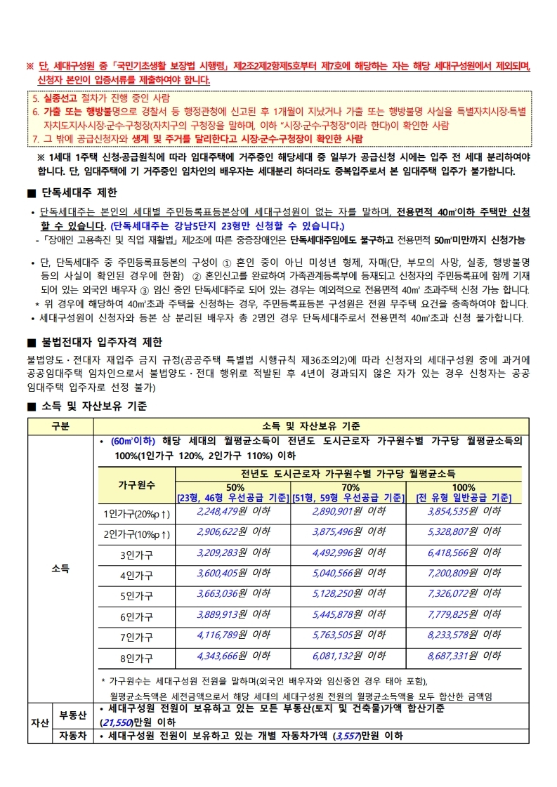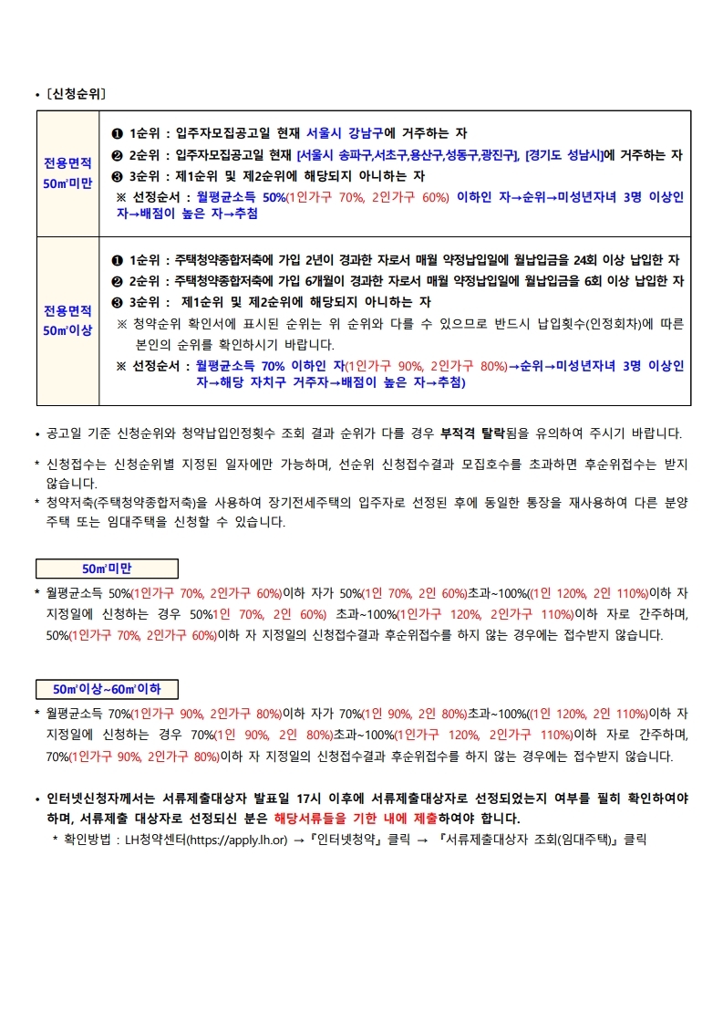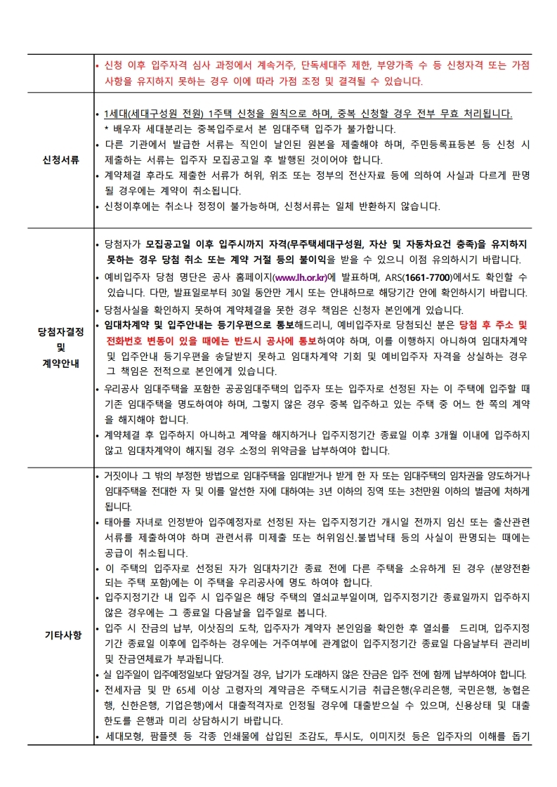 ▪ 본 모집공고문의 대상 주택에 대하여 1세대 1주택 신청을 원칙으로 하며, 중복 신청하는 경우 전부 무효처리 합니다.