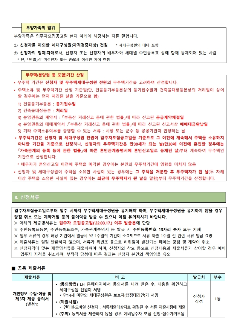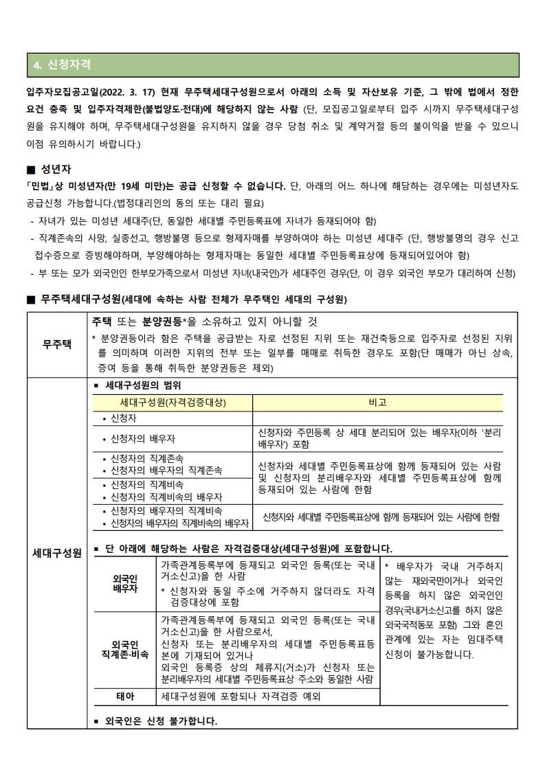 ▪ 금회 모집하는 주택의 입주자 모집공고일은 202.03.17.(목)이며, 이는 입주자격(무주택세대구성원)